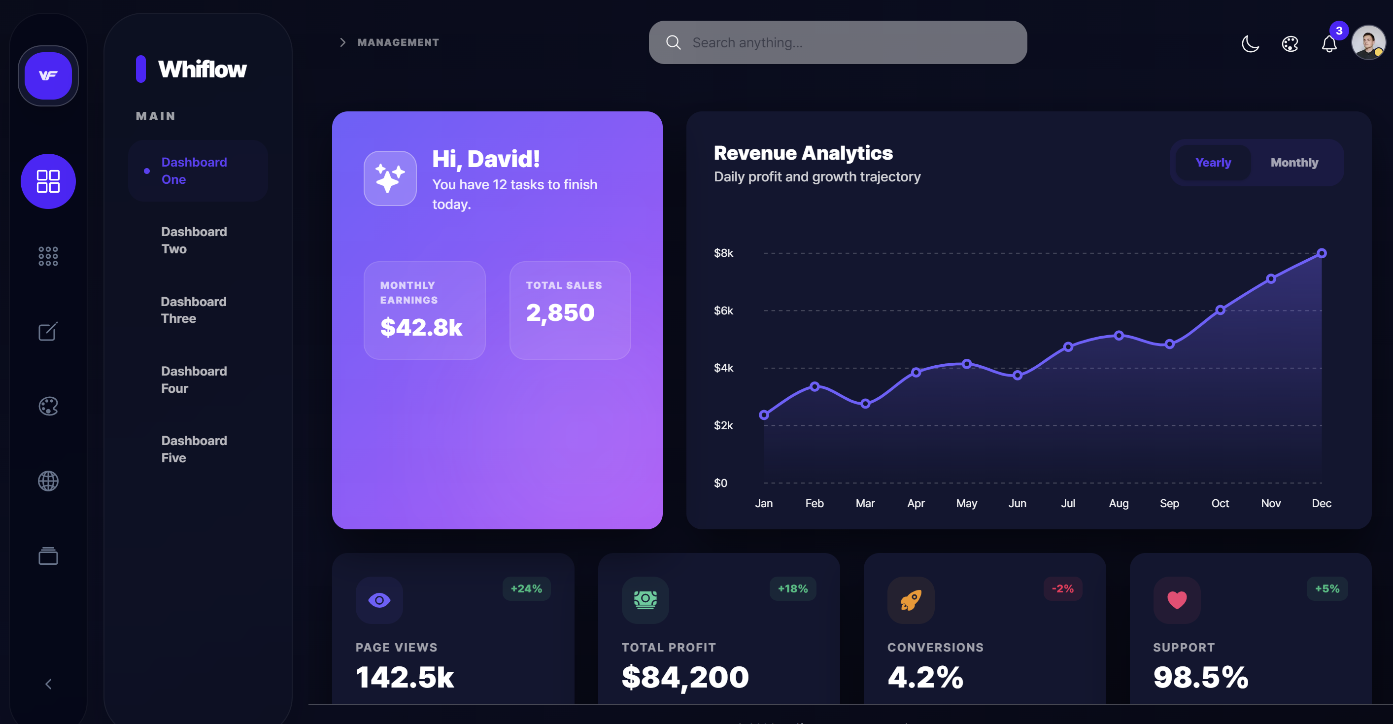 Whiflow Dashboard UI Starter Kit: 관리자 패널의 완벽한 해답